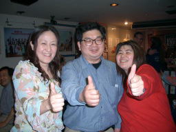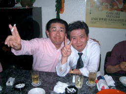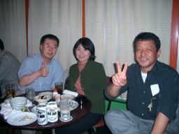 3人揃って「イエー!」ってか(^_^)v 報道写真でいつもお世話になっている ふなやん、「はい、楽しんでます」 すかさずYASIKOが、いぢめに来ました。 |