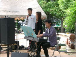 JAZZユニット「PRAY」 急遽5日前に出来たユニット 男性Vo.がトミー、pianoがシゲチャン、 でYASUKOでした! 落ち着いたバラード調なスタンダードナンバー をゆったりと歌っていましたね。 |