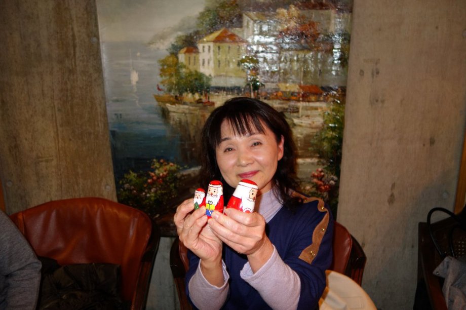 | さてさて、毎年恒例のじゃんけん大会、多くの方々にプレゼントを受け取って 楽しいんでいただきましたよ。あかねちゃんも素敵なプレゼントが当たり 大喜びですね。皆様の喜んでいただける顏は嬉しいですよ。 |