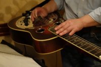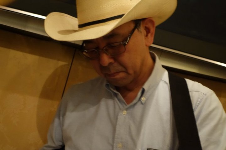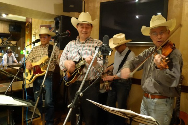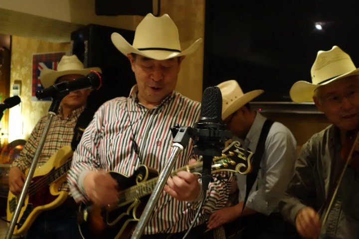 | 今回はなんとドブロのJerryさんが初ボーカルを披露してくれました。 今後も技を磨いて皆様に楽しんで頂こうかと思ってますよ。 |