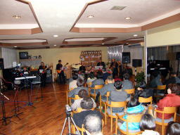 | 今回の企画で2005年にお世話になった スイングローズさんとのコラボです! JAZZとCOUNTRYなんて、いいでしょ! ご覧の通り本当に多くの方がに聞いて 頂、楽しむことが出来ました。 そー言えば2005年のLIVEは一日で 40cmの積雪があり運転手以外は とっても楽しく素敵な雪景色を酒の肴 で飲みつつ変えることが出来たな! 今回も前日に少し降っていたけど なんとか事なきを得ました。 |