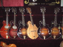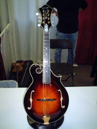 GRADY MANDO 写真が非常に小さく見にくいのですが、素晴らしい仕上と高度なインレイが印象的でした。またFホールに特徴がありました。 音は・・・ちょいと弦だけの音が耳につきました。 はっきり行ってプア-です。物が良いだけに残念! |