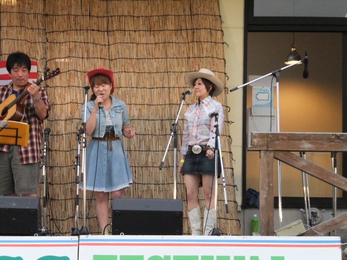 | Suechanのバンド、サニーサイドヒル+YU:KIの演奏、こんなハプニングがFESですな! そして山口トラベラーズさんの次に私共ジュリアンが出演させていただきました。 昨年の反省点その2は早めの出演時間!酔っ払う前に出演しようとの事で7時ごろには演奏を終了しました。 |