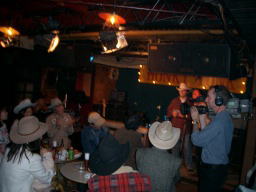 全米ネットワークのメジャーTVチャンネル ナショナル・ジオグラフィック・チャンネル主催 「カントリーシンガーコンテスト」 スタッフは Chris(プロデューサー) Tom(カメラマン) Taiji Igarashi(日本側スタッフ) そして歌っている方が Sam(審査員兼コメンテーター&カントリーシンガー) さんです。 |