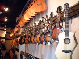 主にビンテージものが多いですね。 超ビンテージ楽器そしてフィドル等は2階のフロア-に 置いてました。 |