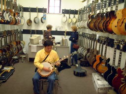 さあ!今日はヒロちゃんのバンジョー買い物ツアーです やってきたのはNASHVILLで一番大きな「グルーンギター」 |