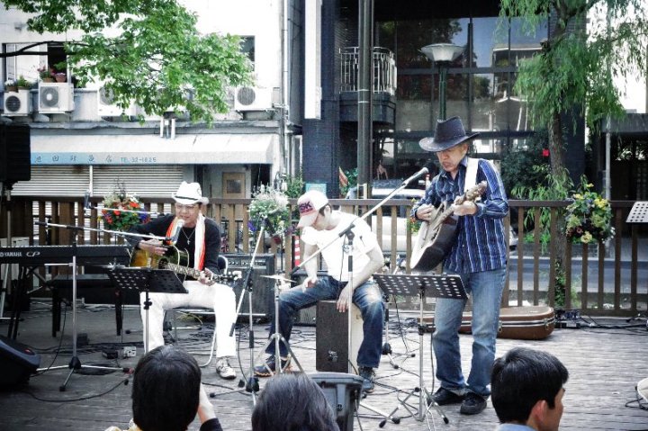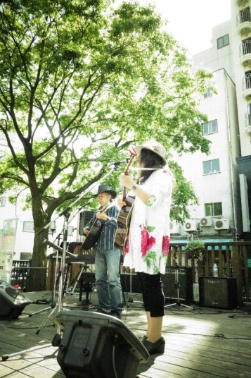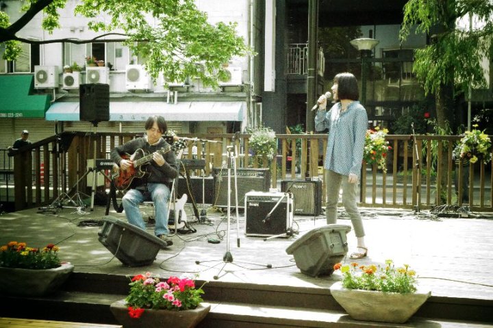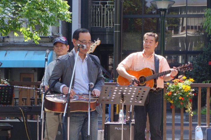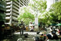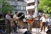 | 我々以外にも多くのフォークバンドの方々が出演して素晴らしい演奏をしていましたよ。 パフォーマンス的にはこの広場がちょうど使いやすい大きさですな。 野殿橋広場はとても快適な使い心地です。 |