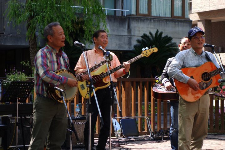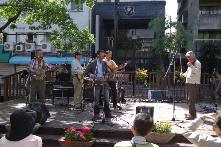 | 天気は一日中最高の晴れ!あふれる新緑の下気持ちよく演奏しました。 また親子連れのお客さんが多く気持ちが緩くなっていますww 皆様、お忙しい中お越しいただき感謝いたします。 {戻る} |