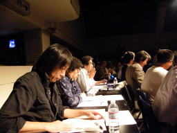 1次登録バンド数約250バンド その中での予選通過数が15 大変な名誉を頂きました。 これは審査委員の厳しいチェック 風景です。1バンドづつ講評があり かなりシビアに講評を頂きました。 |
