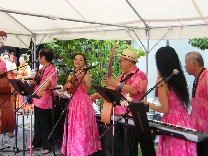 | わてらの新メンバーとしてYU:KIのおとうちゃんが参加して懐かしい歌を披露してくれました。 さて、今回朝からちょいと雨が降ったり止んだり、屋外LIVEはスタッフ総出で苦労しました。 おかげで午後になって雨も止み楽しいフラなど予定通り行なうことが出来ました。 |