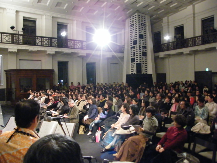 | 第一回の「おやぢMUSICNIGHT」がルネスホールにて開催されました。最初ということでなにかと声のかけられやすいわてらと、ハワイアンバンドの「ヒナファミリー」の2バンドで演奏しました。開けてビツクリ!!な、なんと300席用意したのですが、座りきれないほど多くの方に御越しいただきました!! | |||