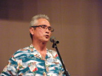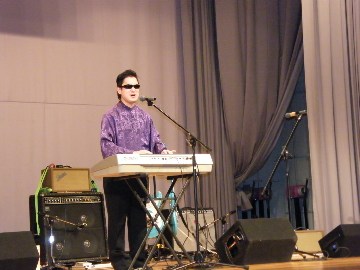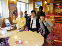 | ほい!湯命館前にはとても綺麗なお姉さんが、ご案内! | 今回大変にお世話になった湯命館のN井さん、大変な気配りを頂ただ、感謝いたします。 | また併せてお世話になりましたA田支配人さま、お心遣いありがとうございました。 | エレクトーン奏者のMORIKI氏、目がご不自由ですが素晴しい音感でどんな曲でもすぐにコピーできるとか!うらやましい・・ |