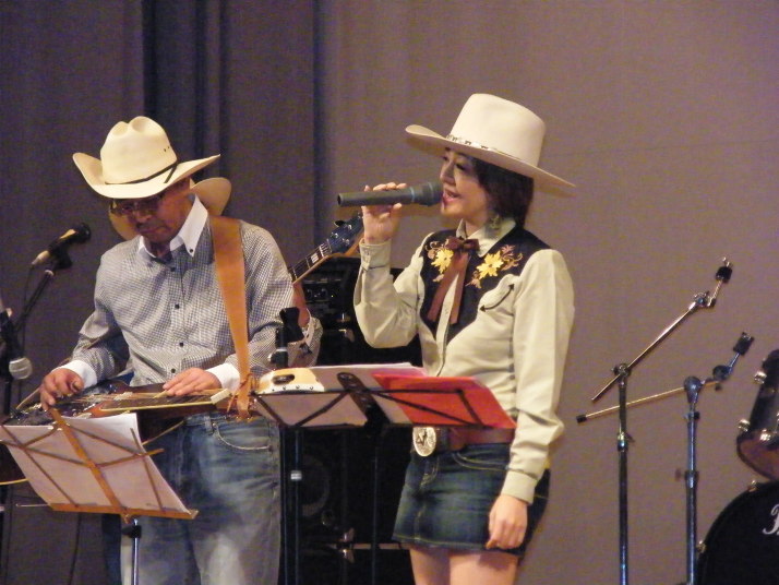 | 最後に、我々ジュリアンです。カントリーからフォークソングまで幅広く演奏しました。 皆様から温かい拍手を頂きました。 {戻る} |