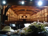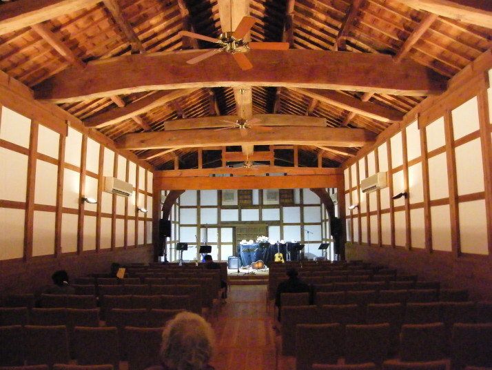 | 最初の写真が左の蔵、そしてLIVEホールです。高い天井とちょいと細長い空間が音質を和らげてくれます。 PAは安物でよくハオルのですが、ほんと今回あまりハオルことは無く素直に出てくれました。 |
