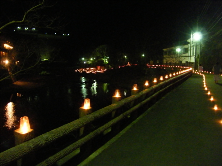 | ご好意により打ち上げ宴会!いつもの方々との楽しいおしゃべりとJAMで翌日まで盛り上がりました。そして3枚の砂湯付近の風景本当にキャンドルが温泉を幻想的に浮いて出てきています。 | |||