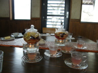 | 翌日、温かい見送りをALANさん一人だけ受けて失礼しました。 | 帰りはちょいと蒜山に立ち寄り今ちょいと有名になってきた「NAJYA」ちゅう店に立ち寄りました。ここはフルーツティーが有名で8種類のフルーツで煮出しており、あまり甘くなく口当たりがすっきり!美味い!!」その後蒜山焼きそばを試食しに行きました。 | ||